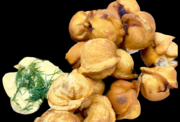 Хрустящие луковые кольца, обжаренные до золотистой корочки и приготовленные с идеальным сочетанием пикантности и нежности. Подаются с богатым чесночным соусом, который добавляет изысканный вкус каждому укусу. Порция 9 шт.